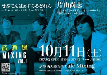 【出演】 片山尚志 せぷてんばぁちるどれん(fromイグワナズ) 【お問合せ】 070-4415-7795(cafe Mixing) |